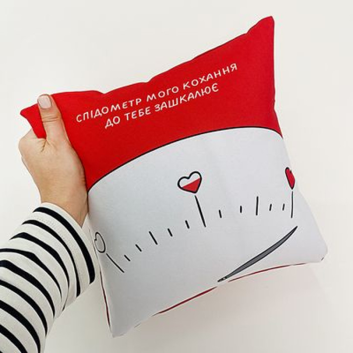 Подушка з принтом 40х40 см Спідометр мого кохання до тебе зашкалює