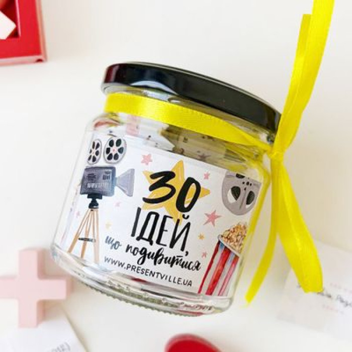 В комплекті: 30 варіантів для перегляду: романтичні фільми, легкі комедії, захопливі історії та кіно для натхнення. Просто дістаньте один листочок — і насолоджуйтесь вечором без довгих пошуків та суперечок.
