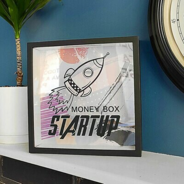 Оригінальна скарбничка для купюр виготовлена з дерева та пластику з оригінальним принтом.